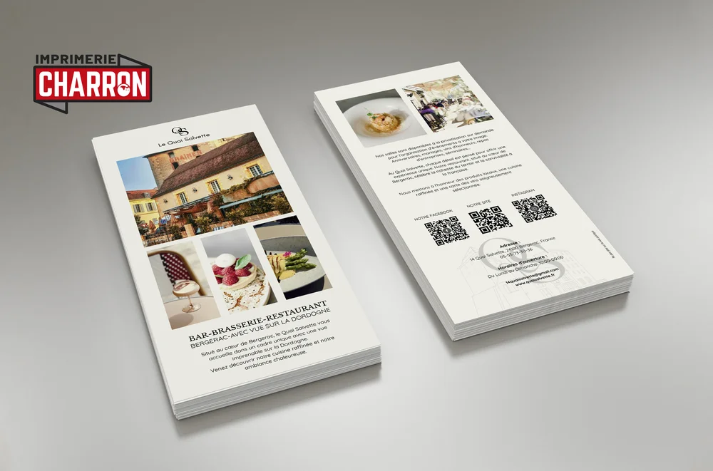 Chez Imprimerie Charron, nous sommes fiers de proposer des services d'impression de haute qualité à nos clients à Périgueux et dans ses environs. Notre dernière réalisation met en avant notre capacité à produire des flyers format 10x21 recto-verso, une solution idéale pour vos besoins en communication visuelle. Grâce à notre expertise en impression numérique, nous garantissons des résultats impeccables qui captivent l'attention de votre public cible.